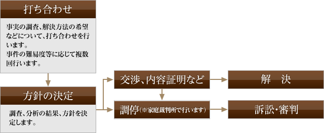 この相談日時の打ち合わせの際に、相談をスムーズに行うために、簡単な状況をお尋ねするとともに、お持ちいただく資料などについて簡単な説明を差し上げます。